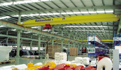 MHB型單梁半門(mén)式起重機(jī)是一種有軌運(yùn)行的小型起重機(jī),主要由電動(dòng)葫蘆、大車(chē)、鋼結(jié)構(gòu)、電氣設(shè)備等組成。它具有結(jié)構(gòu)簡(jiǎn)單、操作方便、安裝維護(hù)容易等特點(diǎn),適用于露天場(chǎng)所和倉(cāng)庫(kù)的裝卸作業(yè)。